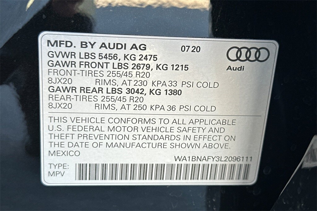 Audi Connect PRIME & PLUS, Audi Virtual Cockpit, Black Optic Package, Convenience Package, Convenience Plus Package, Front Door Sills w/Aluminum Inlay, Leatherette Covered Center Console & Door Armrests, LED Headlights, Matte Black Roof Rails, Panoramic Sunroof, Premium Plus Package, Radio: MMI Navigation Plus w/MMI Touch, Titanium Black Exterior Trim, Trailer Hitch, USB Charge Ports for Rear Seats, Wheels: 19" 5-Spoke Dynamic Design Partly Polished, Wheels: 20" Audi Sport 5-Arm-Offroad Design.