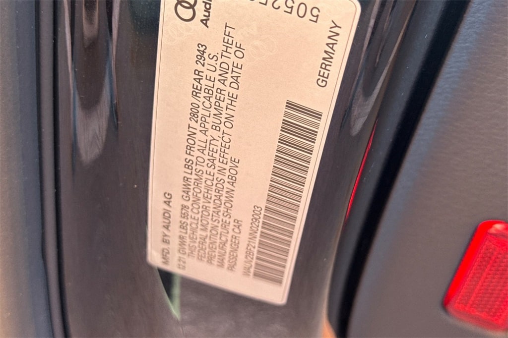 Adaptive Cruise Assist w/Lane Guidance, Bang & Olufsen 3D Premium Sound System, Black Optic Exterior Package, Black Optic Package, Contrast Stitching on Door Armrests, Convenience Package, Dual Pane Acoustic Glass, Executive Package, HD Matrix-Design LED Headlights w/High Beam Assist, Head-Up Display, Illuminated S Line Door Sills, Intersection Assist, LED Taillights w/Dynamic Indicators & Animation, Power Soft-Closing Doors, Prestige, S Line Fender Badge, S-Line Package, Sport Suspension, Traffic Sign Recognition, Wheels: 20" 5-Twin-Arm-Design Titanium.