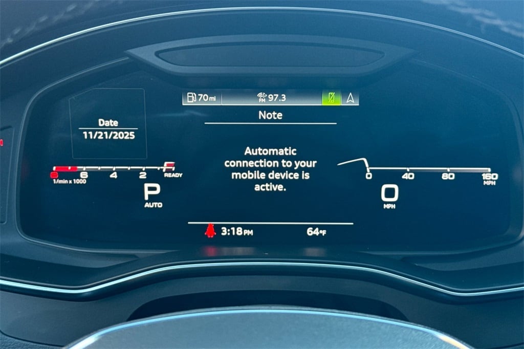 • Smart device integration: Audi smartphone interface (wireless Apple CarPlay/wired Android Auto)